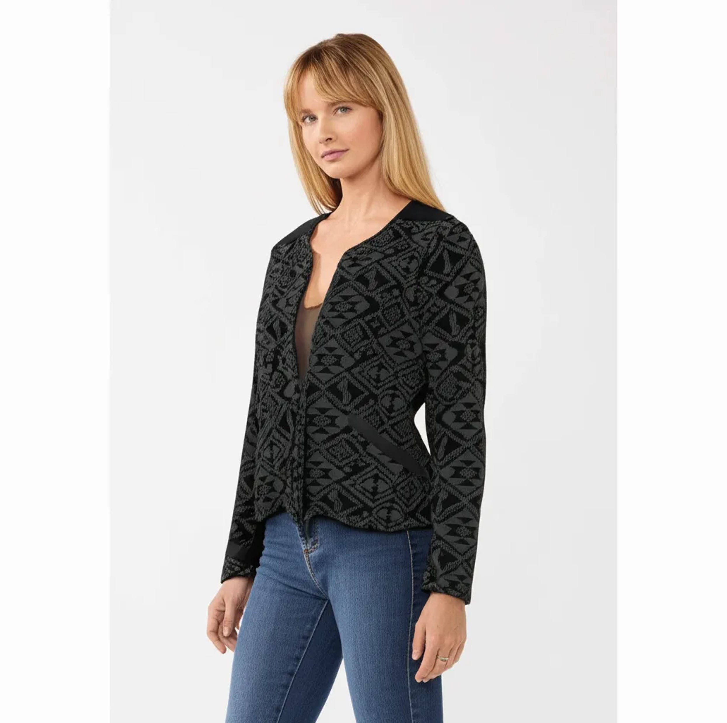 Prenda única: Esta chaqueta gris con negro, talla S, de la marca ONLY, es una prenda de segunda mano en excelente estado. Con un largo de 52 cm y un ancho de 43 cm, combina estilo y funcionalidad para complementar cualquier look. Ideal para quienes buscan exclusividad y moda sostenible. Solo hay una unidad disponible.